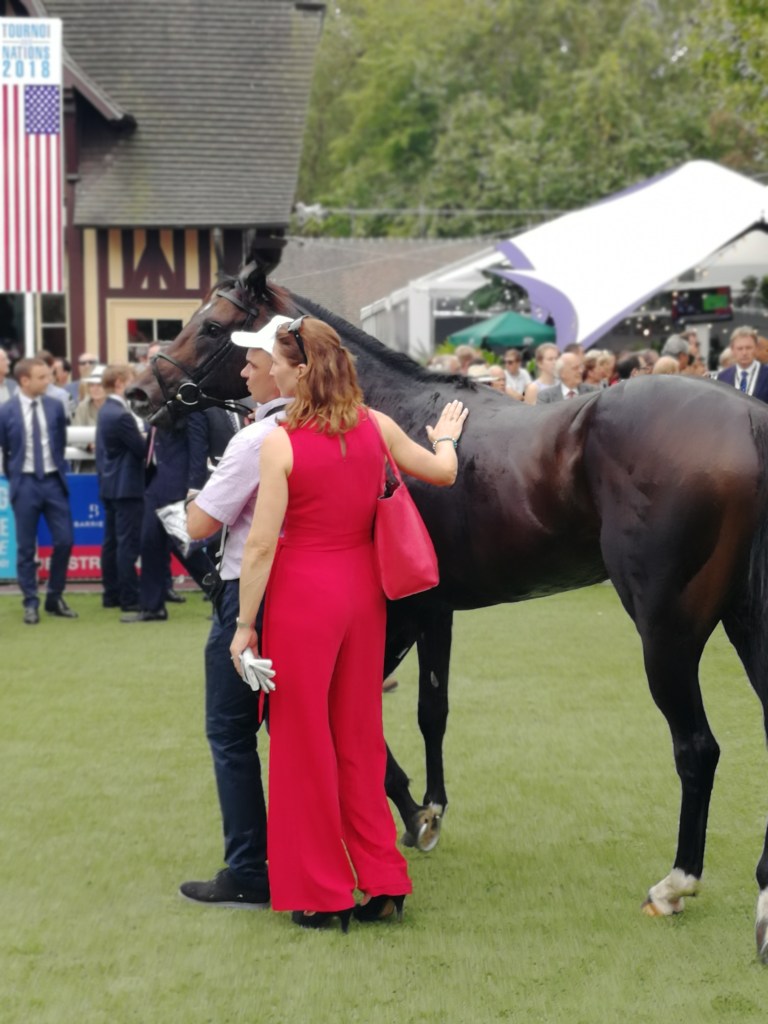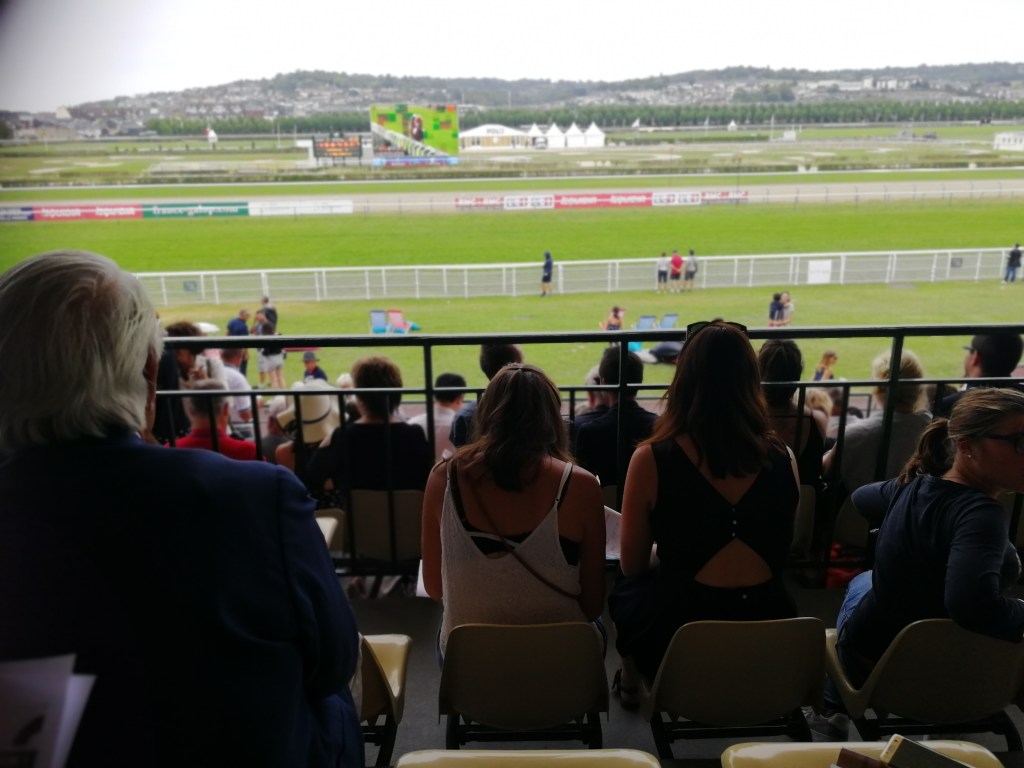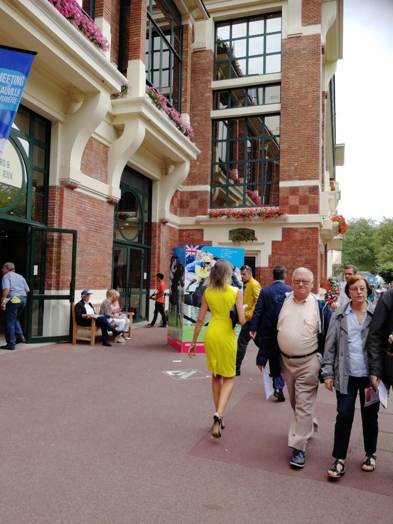 Trascorrere una giornata a Deauville durante un concorso è molto divertente e stancante. Bisogna passare continuamente dalla zona in cui vengono mostrati i cavalli in gara a quella riservata al pubblico che assiste alle corse. E non sono vicinissime.
