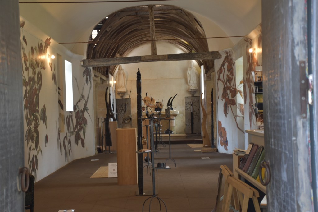 Ogni estate la Chapelle Saint Vigor ospita mostre d’arte. Ho avuto la fortuna di visitarla mentre erano esposte le opere di due artisti molto interessanti, Jean-Yves Baulin e Joël Mérienne, che lavorano rispettivamente con il legno e il metallo (la mostra resterà fino al 20 settembre 2020).