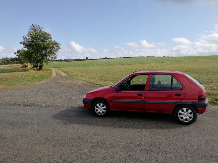 Amo andare a zonzo per le stradine di campagna con la mia bagnole rossa che ha più di 20 anni, fermandomi ogni tanto per scattare una foto.