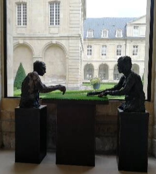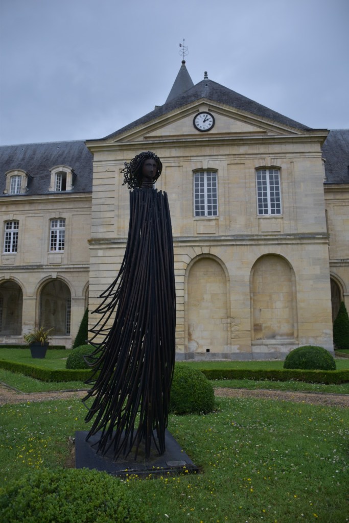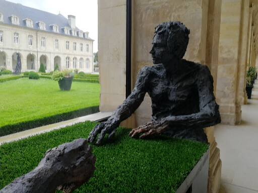 Passeggiando sotto il portico mi imbatto in una serie di opere d’arte davvero sorprendenti, “Duo de l’herbe“. Realizzata nel 2009 da Cécile Raynal in argilla carbonizzata, resina e metallo, questa installazione è nata dopo due anni di collaborazione con alcuni detenuti del centro penitenziario di Caen. Il risultato è questa metafora dell’immobilità e dell’attesa.