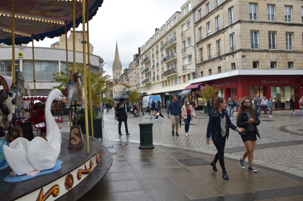 Mi dirigo quindi verso il centro della città. La luce e i riflessi del sole sui tetti bagnati dalla pioggia, le ragazze che passeggiano, la giostra, i ristorantini e i café, biciclette ovunque. Questa è Caen.