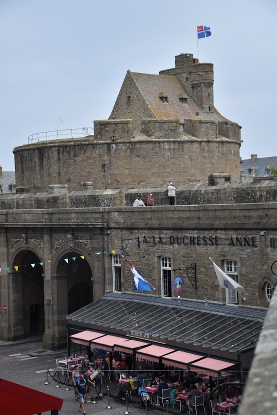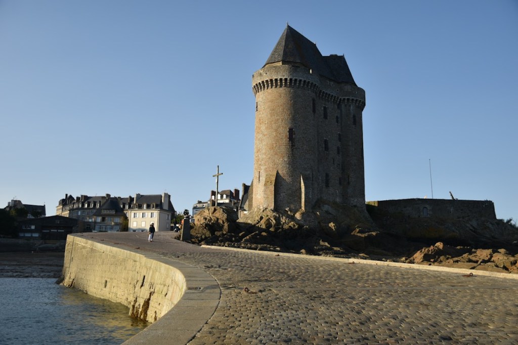 segue di pochi minuti. La Tour Solador è una torre medievale che troneggia sul porto e sulla plage des Bas Sablons, proprio di fronte a una serie di ristorantini, bistrot e creperie pieni di gente che beve birra e mangia crepes godendosi il sole. Composta da tre torri alte 18 metri, questa bellissima fortificazione fu costruita da Giovanni V, duca di Bretagna, per controllare l’accesso al fiume Rance quando Saint-Malo non riconosceva la sua autorità. Durante la Rivoluzione Francese fu trasformata in una prigione.