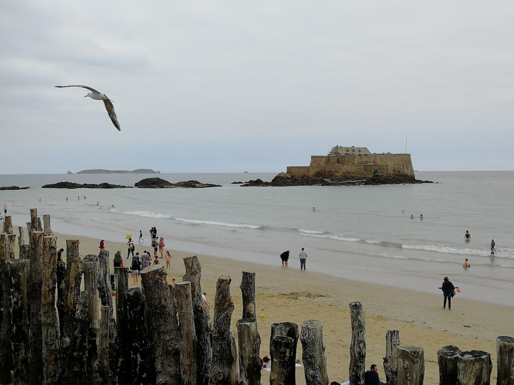 La prima cosa che ho capito appena arrivata è la difficoltà di parcheggiare. Ho prenotato due notti in una camera con Airbnb, nel quartiere di Saint Servan, venti minuti a piedi dal centro storico (“Intra-muros“). Ma nei due parcheggi vicini al bnb, neanche l’ombra di un posto. Alla fine riesco a trovarne uno in un terzo parcheggio che dà sul port des Sablons, piccola insenatura che protegge la plage des Bas Sablons, un angolo di pace da cui si può ammirare in lontananza la vecchia Saint Malo. Come dicono qui in Francia, “c’est parti!”.