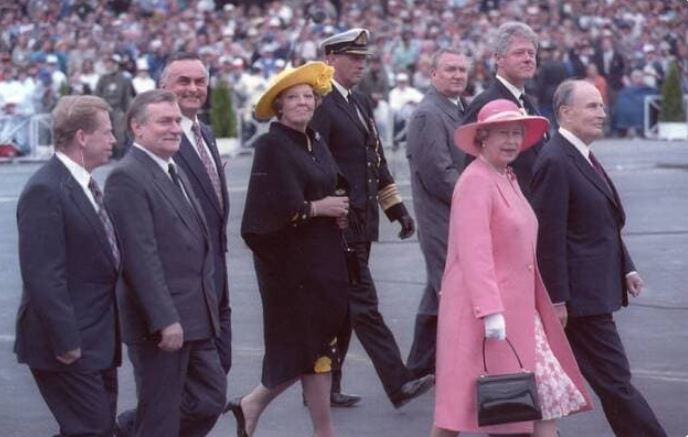 Come nel 1984, quando al fianco di Ronald Reagan e François Mitterrand si reca a Utah Beach e ad Arromanches per salutare e ringraziare i veterani britannici.