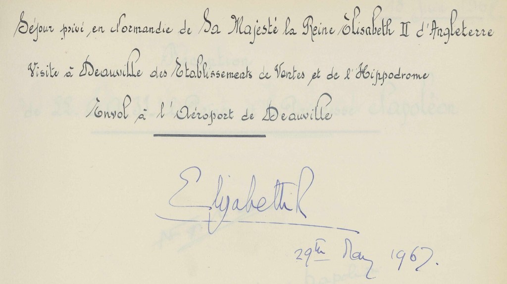 In quella occasione, la Regina approfitta per fare un salto nell’elegante cittadina costiera, dove verrà eccezionalmente autorizzata ad attraversare a bordo della sua Rolls Royce le celebri Planches di Deauville.