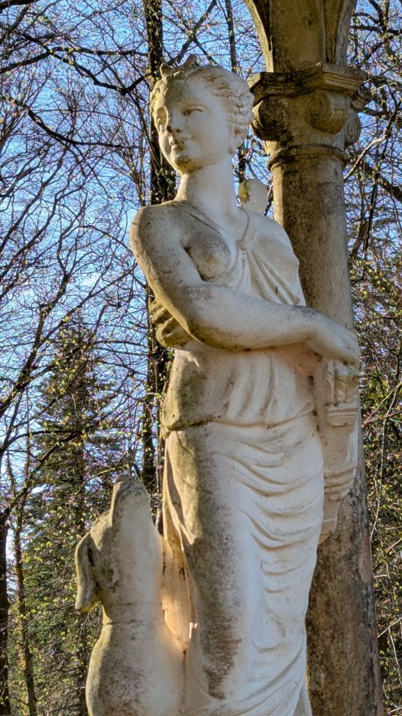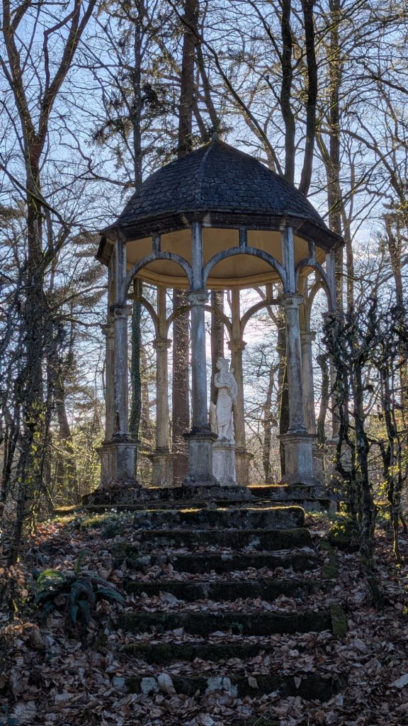 Mi allontano dallo stagno e percorro un piccolo sentiero, in fondo al quale intravedo un tempietto. Mi avvicino e leggo “Tempio di Diana” .